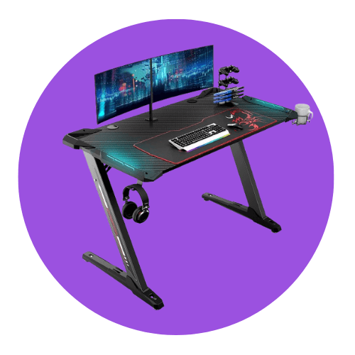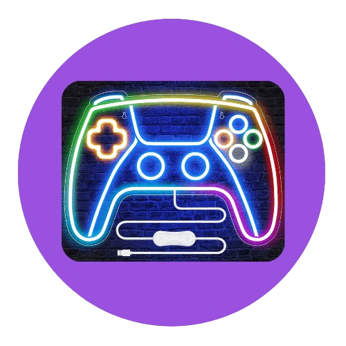Por ejemplo puedes tirar por regalos de decoración gaming como una tira de luces LED para ambientar, un letrero de neón, una lámpara temática o algo más práctico como una mesa gaming.